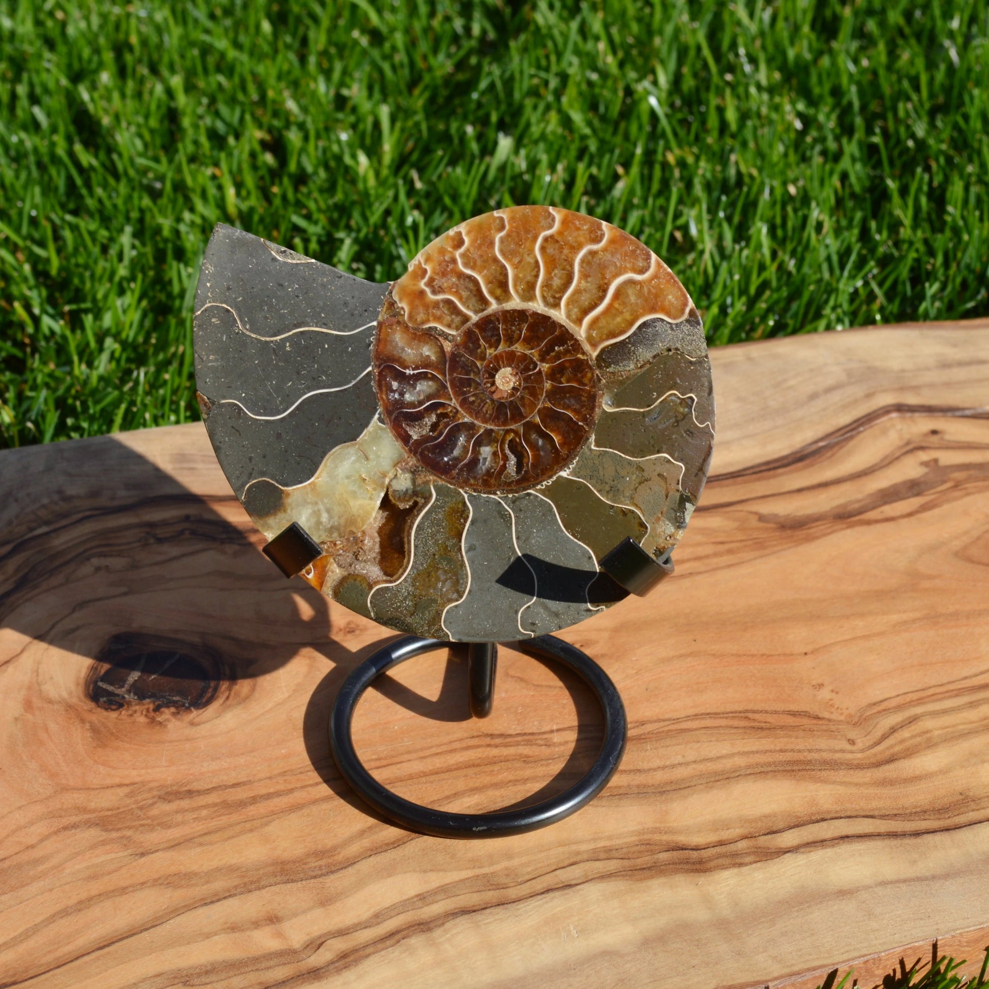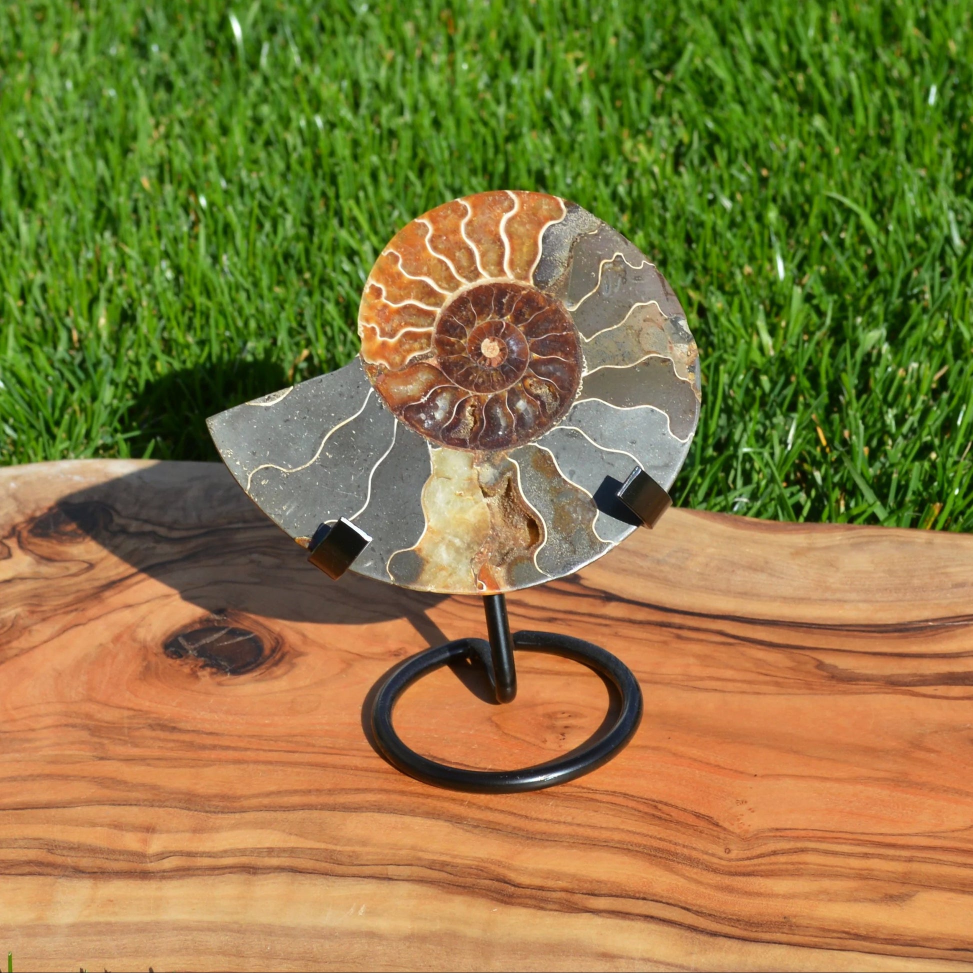 Ammonithälfte auf Halterung - Fossil
