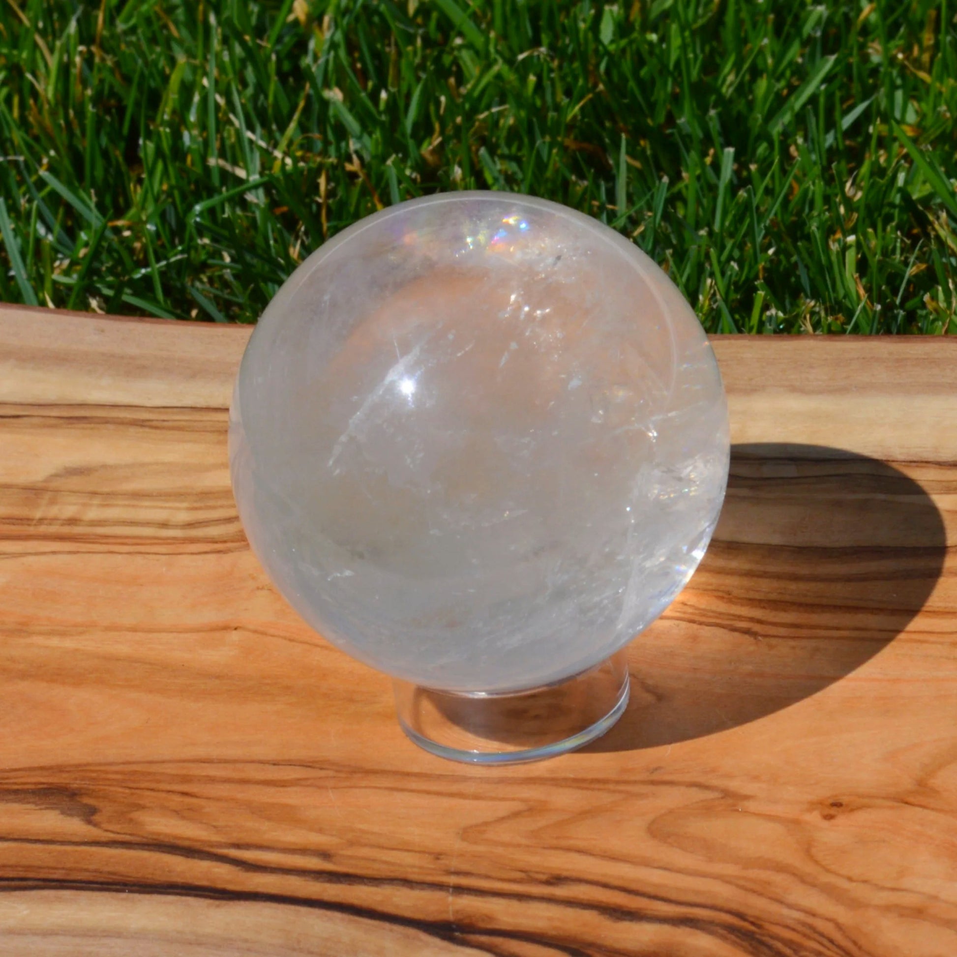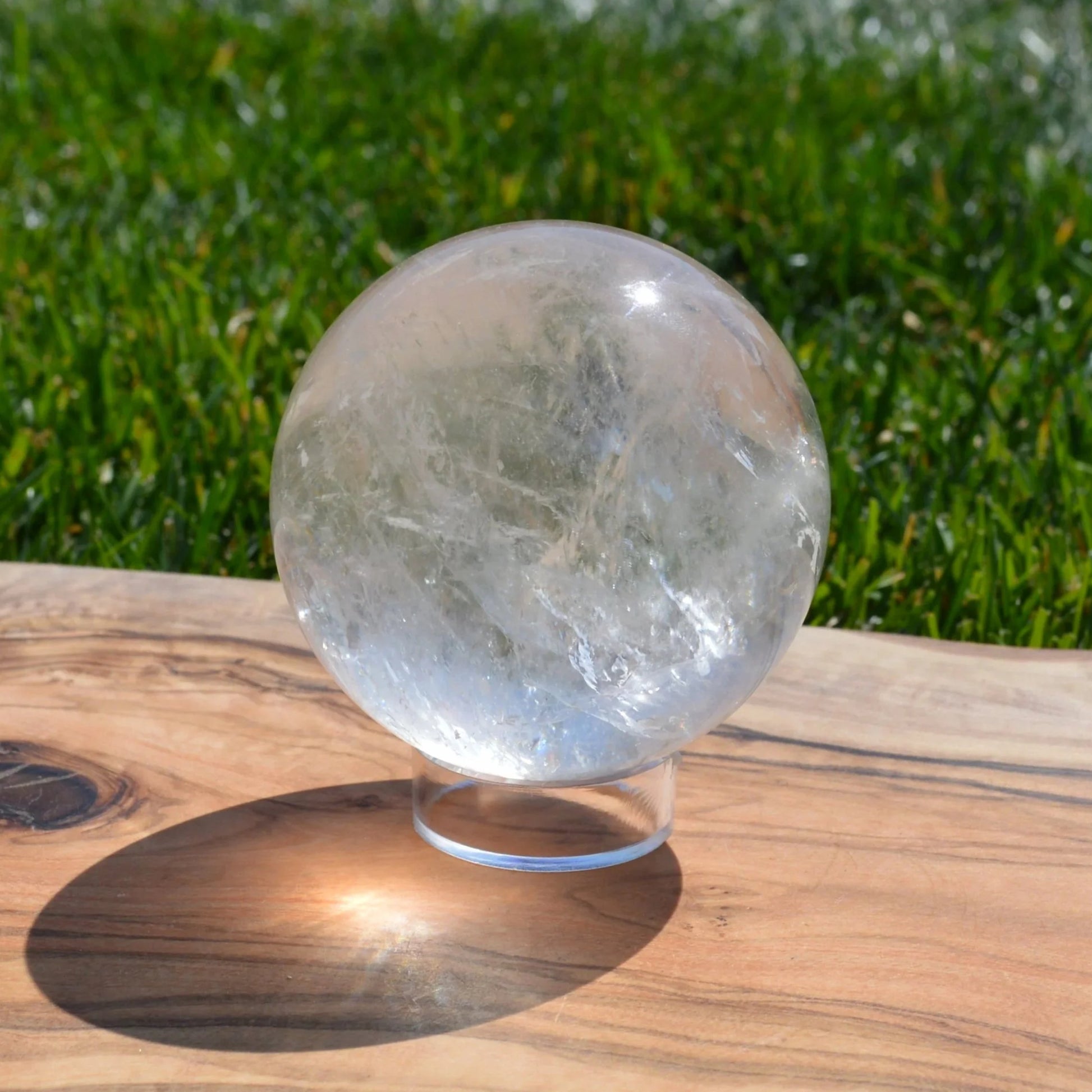 SALE Hinweis: Diese Bergkristallkugel hat eine eher milchige Struktur mit kleinem natürlichen Einschluss.