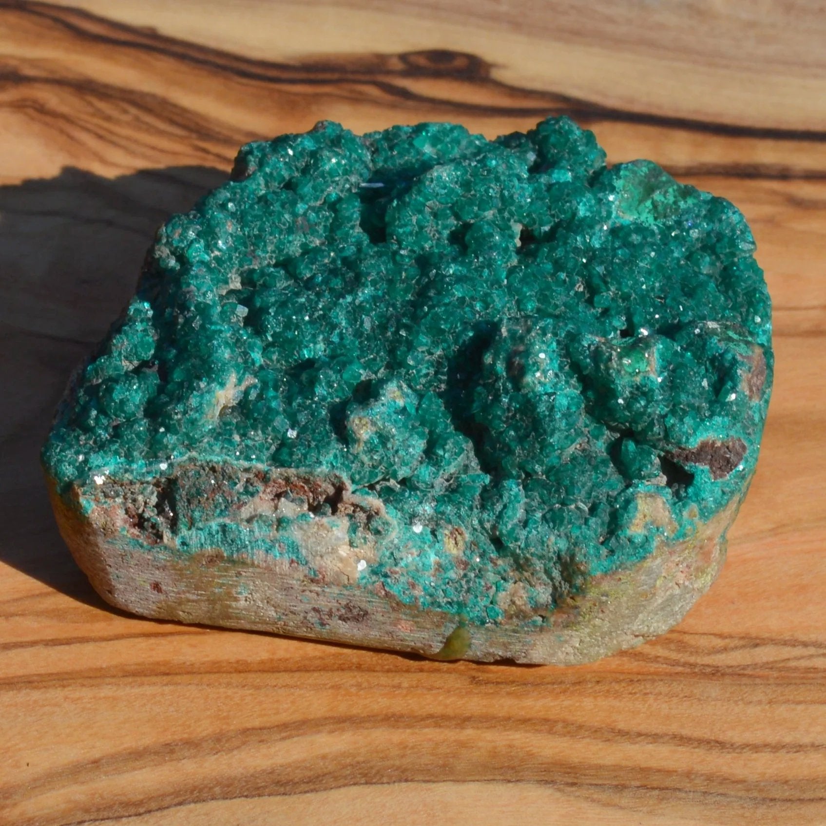 - Diese Dioptas-Kristallstufe besticht durch ihre leuchtend smaragdgrünen Kristalle, die in ihrer klaren, natürlichen Form faszinieren. Die glatten, prismatischen Kristalle setzen sich perfekt von der Matrix ab und schaffen ein beeindruckendes, elegantes Gesamtbild. Ein wahres Meisterwerk der Natur, das sowohl Sammler als auch Liebhaber einzigartiger Mineralien begeistert.